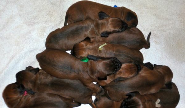 13.04.2025 w naszej hodowli Red Bavaria FCI urodziły się szczenięta 4 chłopców i 3 dziewczynki po rodzicach: